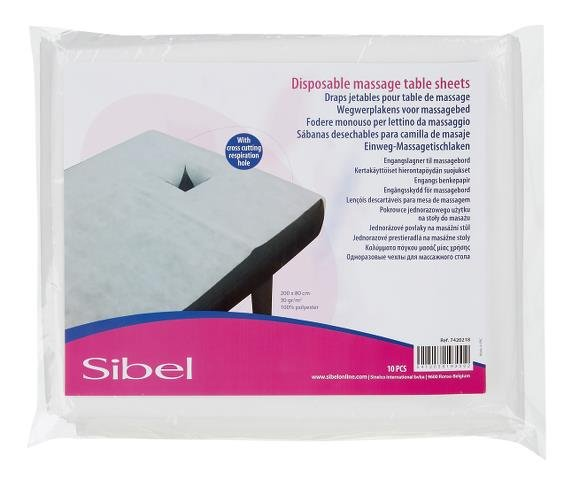 Jednorazové netkané plachty na masážny stôl s otvorom na hlavu.