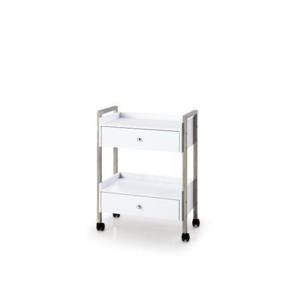 Kompaktný manipulačný vozík so zásuvkami z MDF a kovu.