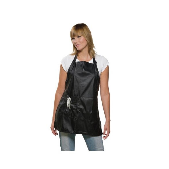 Jemná plastová zástera so zaťahovaním na šnúrky.