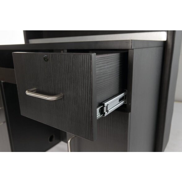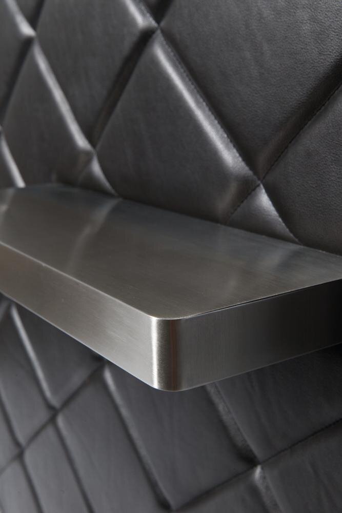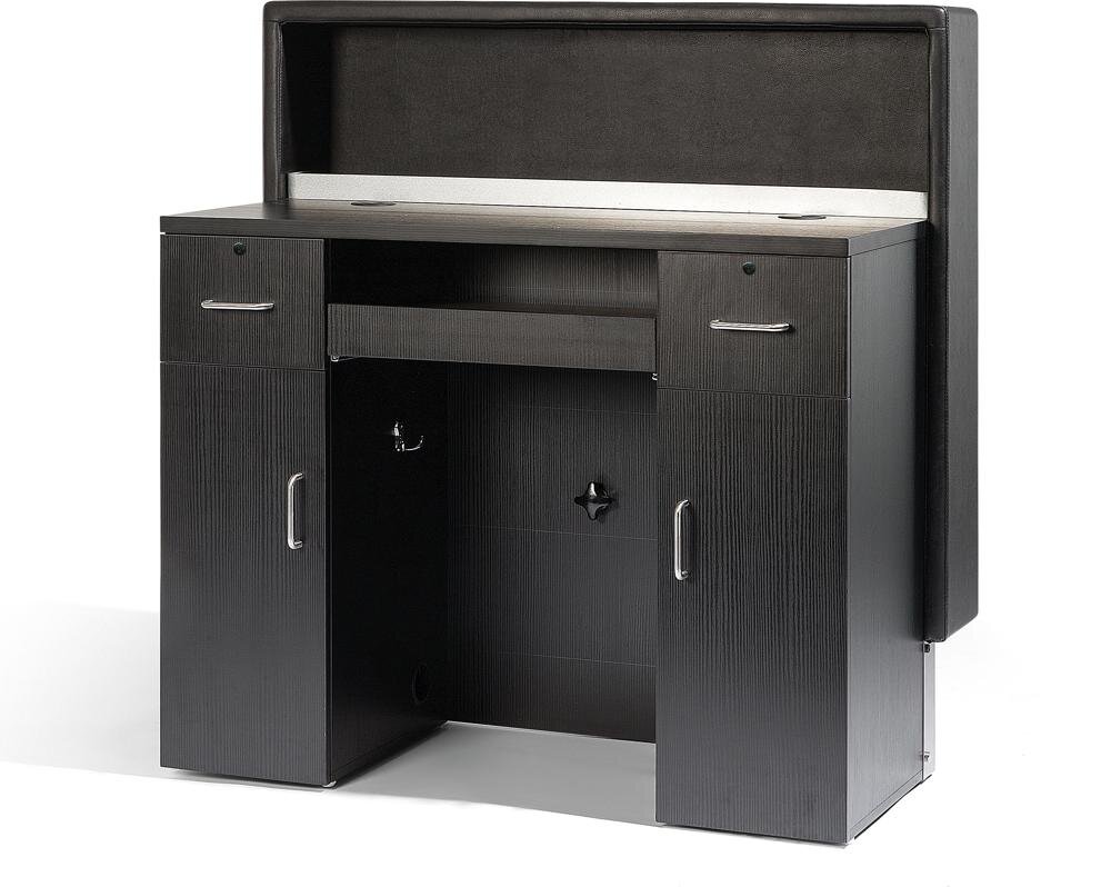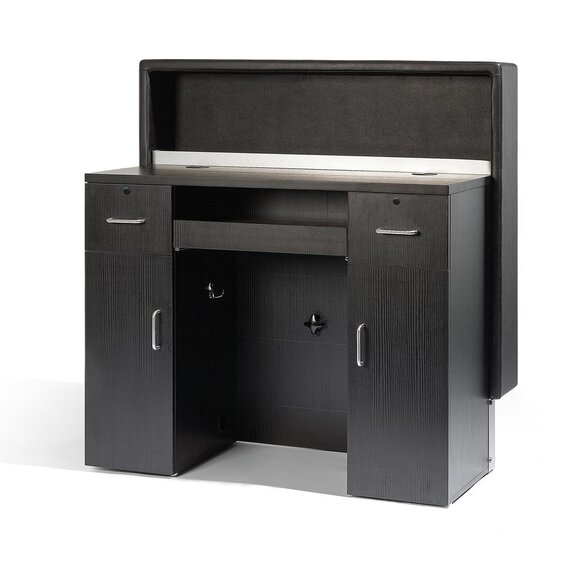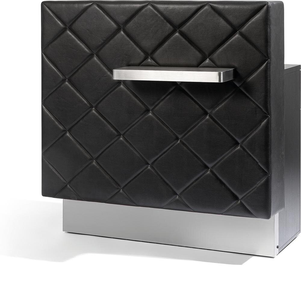 Drevená recepcia s priečelím z imitácie kože. Polička a ochrana pri nohách z nerezovej ocele 304. 2...