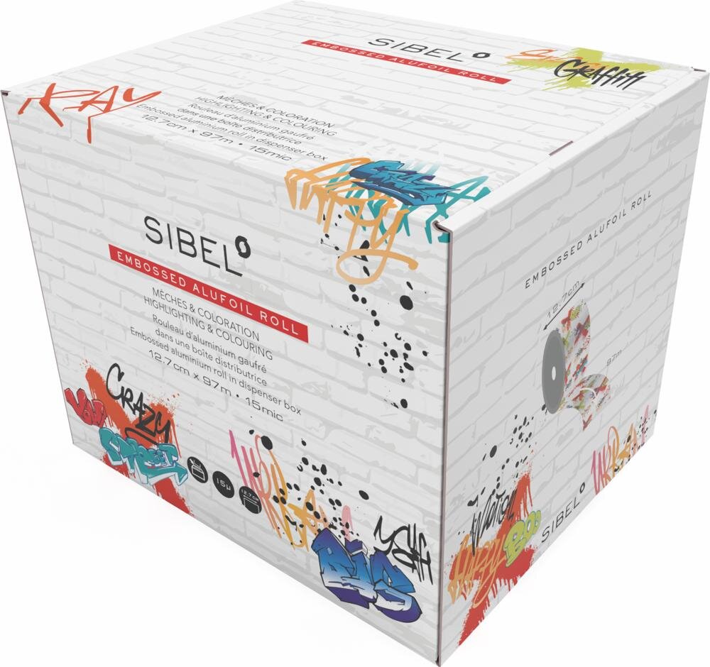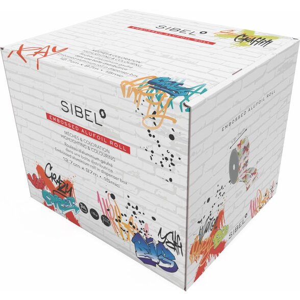 SIBEL Graffiti embosovaná melírovacia fólia 12,7 cm × 97 m (15 µm) je ideálnym pomocníkom pre každého, kto hľadá spoľahlivú, odolnú a ľahko použiteľnú fóliu na melíry, balayage či iné techniky farbenia. Spojenie praktickej embosovanej štruktúry, atraktívneho graffiti dizajnu a dispenzného balenia robí z tohto produktu must-have pomôcku pre každý moderný salón.