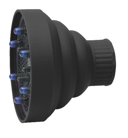 Skladací difuzér na fén s 9 štetinami. Ideálny na skladovanie, vyrobený z tepelne izolačného silikón...