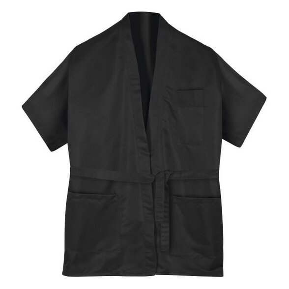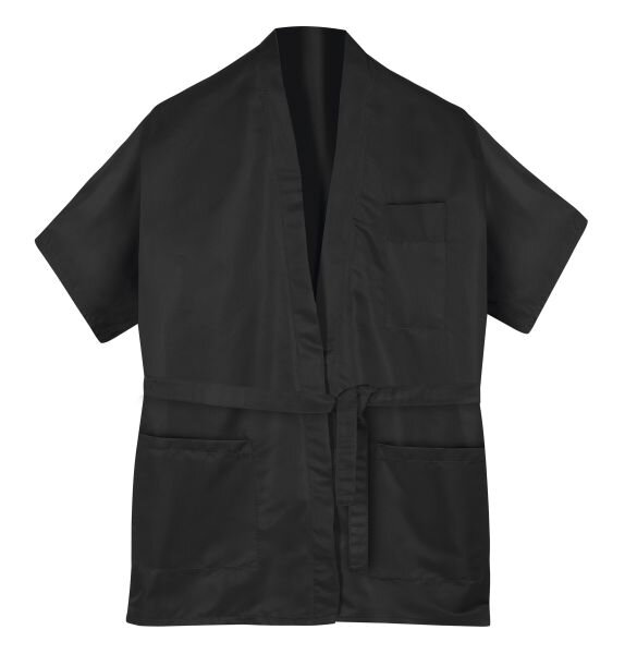 Zástera s krátkymi rukávmi s vreckami. Vodeodolná a polyesterová so zaťahovaním na šnúrky.