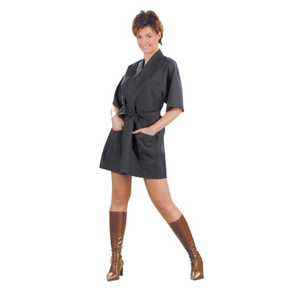 Zástera s krátkymi rukávmi s vreckami. Vodeodolná a polyesterová so zaťahovaním na šnúrky.