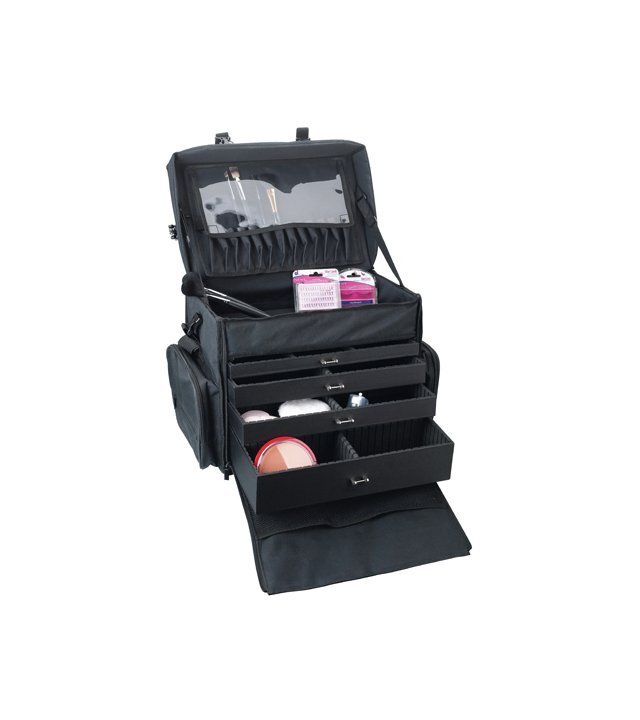Štýlový čierny nylonový kufrík pre všetky kozmetické pomôcky. Viaceré vyťahovacie úložné priestory,...