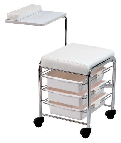 Praktický kozmetický taburet s odnímateľnou opierkou na ruku, 3 šuflíkmi a nastaviteľnou výškou.