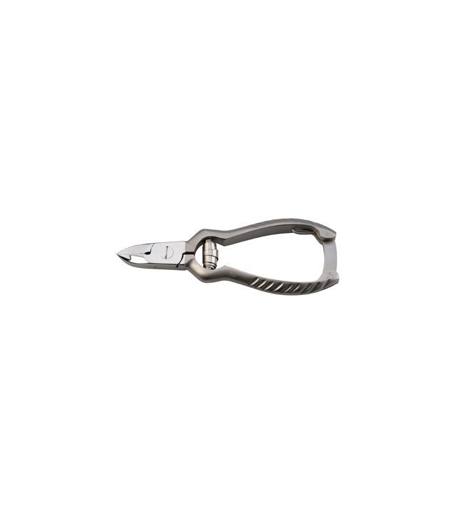 Nožnice na tvrdé nechty z nerezovej ocele s pružinou a sponou - jemne šikmý rez.