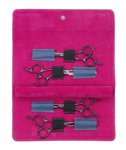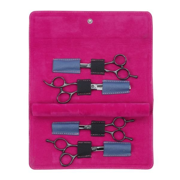 Kadernícke púzdro na 4 nožnice. Vysoko kvalitný vzhľad - vonkajšia strana z PU a vnútorná zo zamtu. S jednoduchým zapínaním na gombík. Bez príslušenstva.