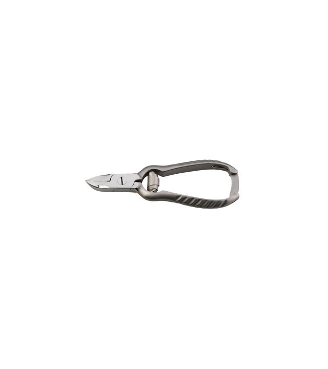 Nožnice na tvrdé nechty z nerezovej ocele s pružinou a sponou - jemne šikmý rez.