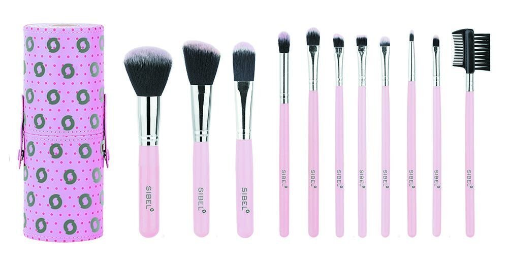 Sibel set 11ks pink flamingo set kozmetických štetcov