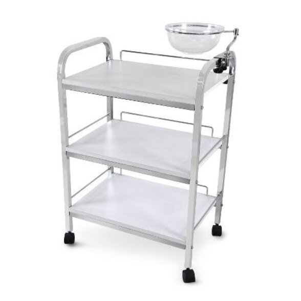 Profesionálny kozmetický vozík s tromi poschodiami a miskou na príslušenstvo.