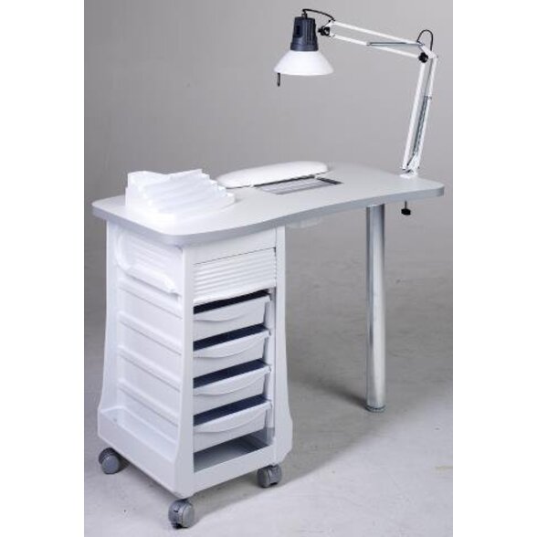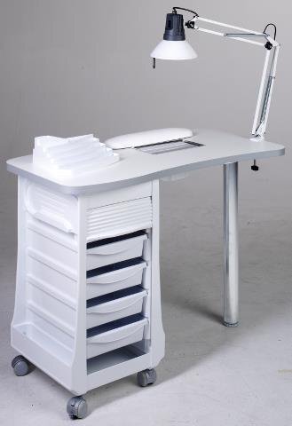 Stôl na manikúru s vozíkom na skladovanie pomôcok a integrovaným odsávaním - vankúš, lampa a tácka z...