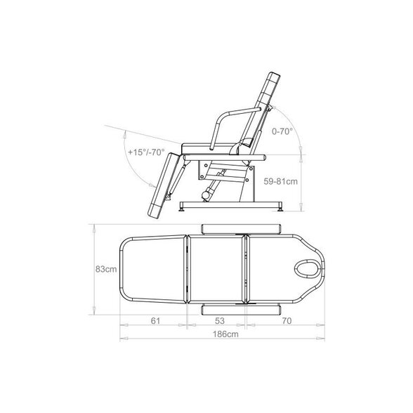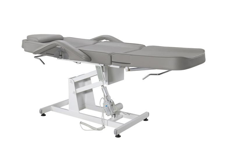 Elektrické kozmetické kreslo s jedným motorom. Motor nastavuje výšku, zatiaľ čo opierka chrbátu a op...