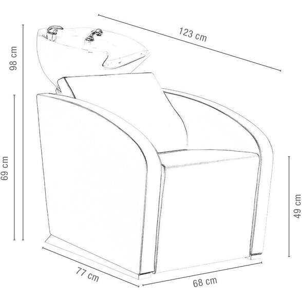 Umývací box s integrovaným kreslom s ohňovzdornou penou 50kg/m3 a oceľovou konštrukciou. Hlboké ergo...