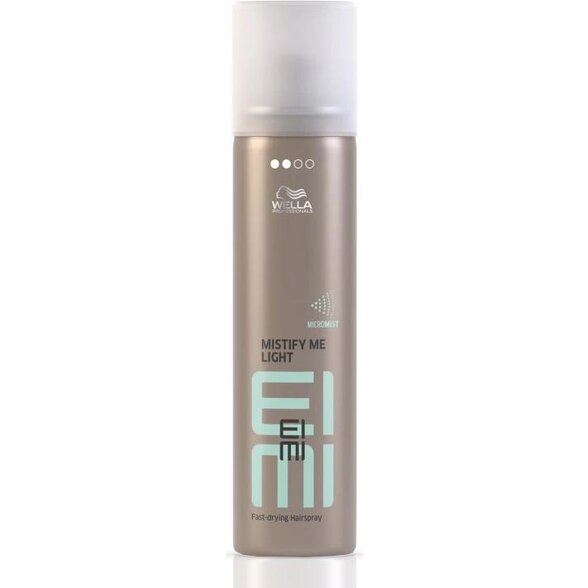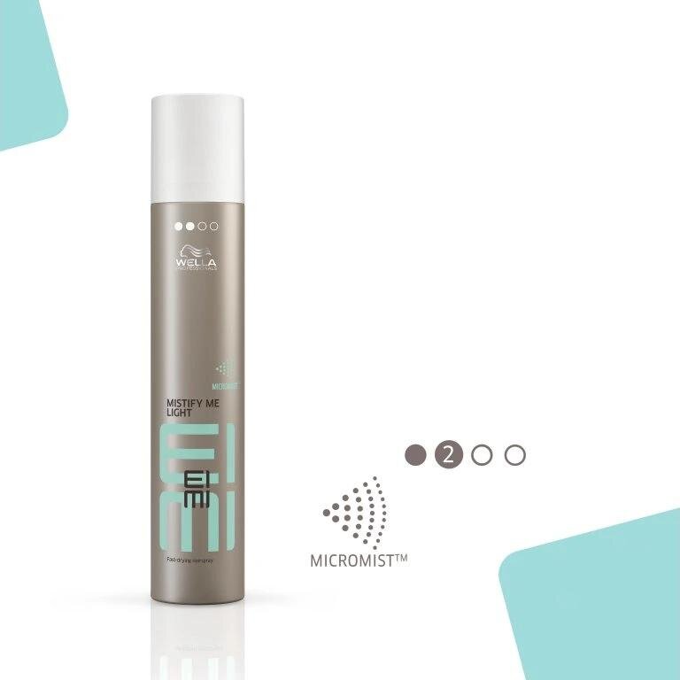 Căutați un fixativ care să vă mențină coafura în siguranță, dar care să nu încarce sau să lipească firele de păr? Vă prezentăm Wella Professionals EIMI Mistify Me Light – un fixativul profesional care oferă o fixare ușoară, flexibilă, cu un aspect natural și păstrează părul în mișcare toată ziua.