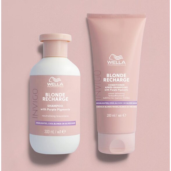 Încercați Wella Professionals Invigo Blonde Recharge, șamponul violet pentru păr blond și cărunt, considerat pe bună dreptate cel mai bun șampon violet de pe piață, pentru a vă bucura de rezultatele unui salon acasă și pentru a păstra blondul perfect fără compromisuri.