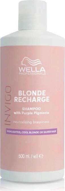 Șampon violet pentru păr blond și gri, care neutralizează nuanțele gălbui și conferă o strălucire strălucătoare - Wella Professionals Invigo Blonde Recharge