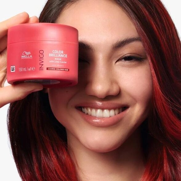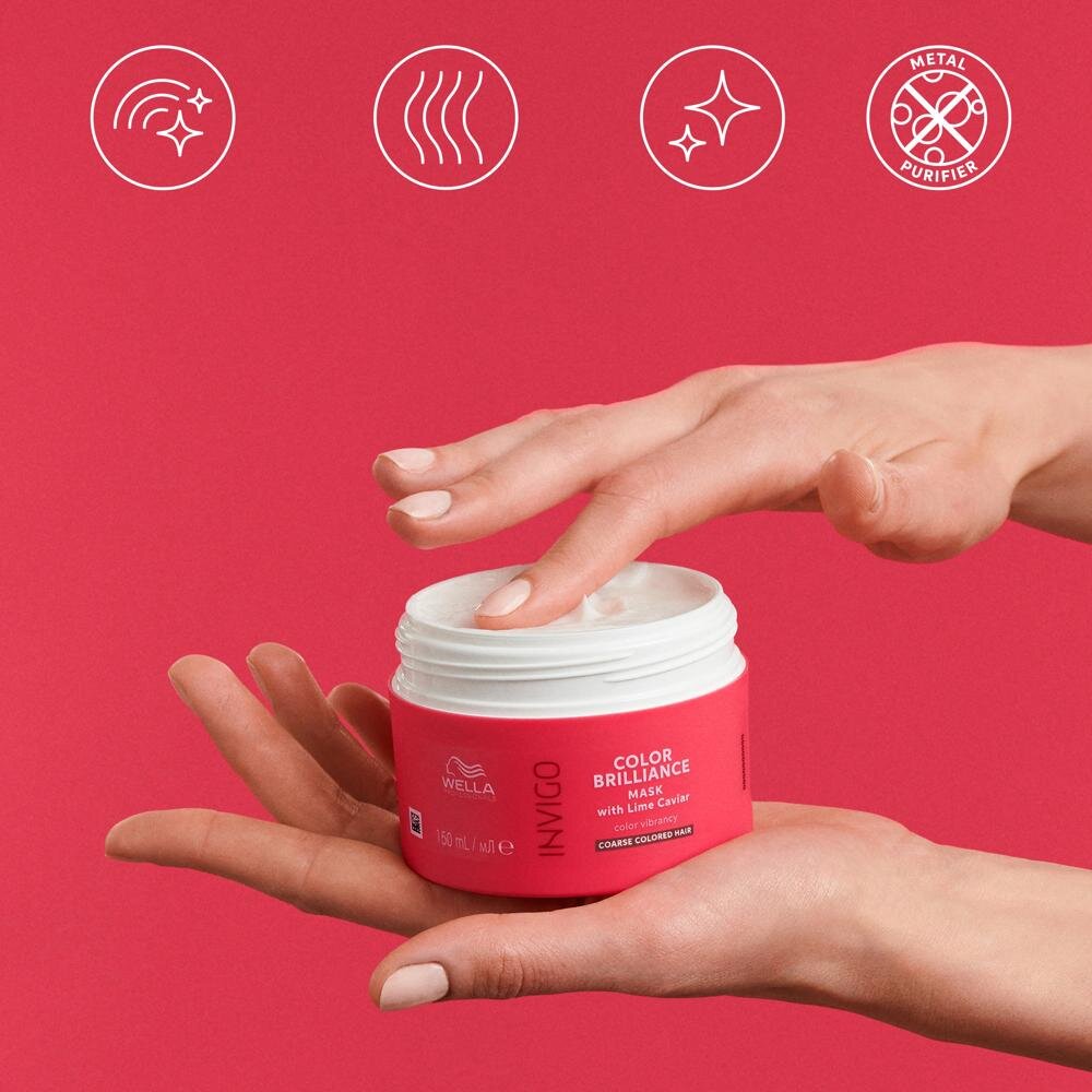 Masca Wella din gama de produse Wella Professionals Wella Mask oferă cea mai bună îngrijire pentru părul vopsit gros Invigo Color Brilliance O gamă de produse special concepute pentru părul vopsit chimic, gros, care nu numai că hrănește în profunzime, dar, mai presus de toate, protejează culoarea împotriva decolorării, a spălării și a deteriorării.