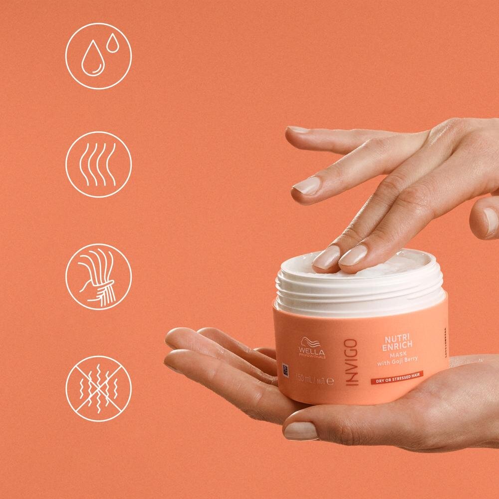 Masca Wella Professionals Invigo Nutri Enrich face parte dintr-o gamă cuprinzătoare de produse de îngrijire a părului folosite în întreaga lume.Formula sa avansată oferă rezultate imediate fără compromisuri – fără parabeni și silicon și are în vedere sănătatea firului de păr. Dacă doriți un păr care nu este doar frumos, ci și sănătos la atingere, această mască pentru părul ondulat este soluția care vă va ajuta să vă recâștigați încrederea și să vă bucurați de un păr frumos în fiecare zi.