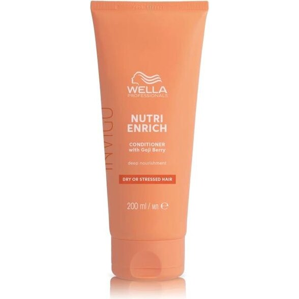 Despre gama Wella Professionals Invigo Nutri Enrich - Gama profesională de îngrijire a părului Wella NutriEnrich a fost creată pentru părul exigent, care are nevoie de o nutriție intensă.Produsele din gamă, de la șampoane la măști, folosesc puterea ingredientelor naturale, cum ar fi goji, pantenol și acid oleic, pentru a reda părului vitalitatea, elasticitatea și strălucirea naturală.