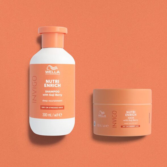 Părul uscat, mat și cret necesită o atenție specială. De aceea, am creat șamponul Wella Professionals Invigo Nutri Enrich – soluția profesională pentru hrănirea și refacerea în profunzime a părului uscat. Este conceput nu numai pentru a curăța delicat, dar, mai presus de toate, pentru a hrăne în profunditate, oferind strălucire, elasticitate și vitalitate. Ideal pentru oricine dorește un păr frumos și sănătos, fără compromisuri.