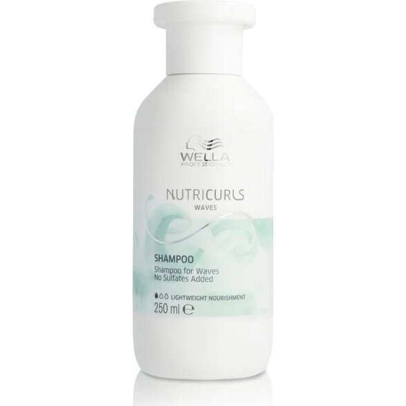Ľahký čistiaci a vyživujúci šampón Wella Professionals z radu NutriCurls na definíciu vlnitých vlasov. Bez pridaných sulfátov.