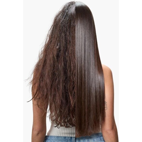 Datorită ingredientelor active – acid glioxilic, aminoacizi și proteine de întărire – structura părului este refăcută, reducând încrețirea și îmbunătățind rezistența la umiditate.