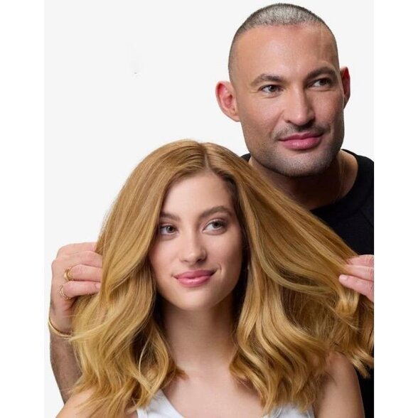 4. Activarea prin căldură - După ce ați terminat tratamentul, clătiți bine cu apă călduță fără șampon și uscați-vă părul cu un uscător de păr până când este complet uscat.Apoi, folosiți o placă de păr (170-210 °C) și călcați șuvițele în bucăți mai mici - Wella Professionals Smoothfiller îndreptare profesională a părului.Acest pas activează efectul demi-permanent – se formează noi legături în păr, care fixează îndreptarea părului.