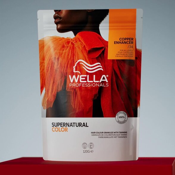 Wella Professionals Supernatural Color /34 Copper Enhancer este un ton pur / aditiv profesional conceput pentru a fi amestecat cu nuanțele gamei Supernatural Color. În nomenclatura clasică Wella, reprezintă o combinație de aur și roșu, creând un efect cald, arămiu-auriu. Nu este destinat utilizării singure. Este potrivit pentru toate înălțimile de ton, unde este utilizat pentru a spori sau evidenția caracterul cald al culorii.