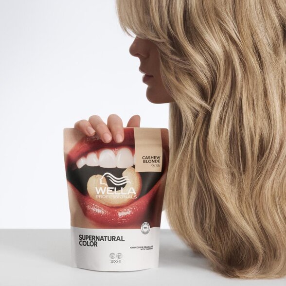 Wella Professionals Supernatural Color 9/36 Cashew Blonde reprezintă o culoare blondă naturală modernă, care combină puterea ingredientelor pe bază de plante cu tehnologia precisă de calitate de salon. Datorită proporției mari de ingrediente de origine naturală și a compoziției vegane, oferă o soluție delicată, dar fiabilă pentru cliente care doresc un blond frumos, fără compromisuri.