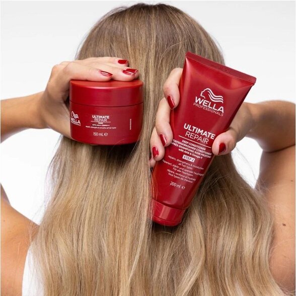 Masca de păr Wella Professionals Ultimate Repair este mai mult decât o mască de păr obișnuită – este un tratament profesional care reda părului viață, putere și frumusețe. Dacă sunteți în căutarea celei mai bune măști pentru părul uscat, deteriorat sau cret, care garantează îmbunătățirea stării acestuia fără a-l împovăra, ați găsit soluția perfectă. Părul dvs. merită cea mai bună îngrijire – oferiți-i o regenerare a părului pe care o puteți gǎsi doar în saloane, iar acum și acasă.